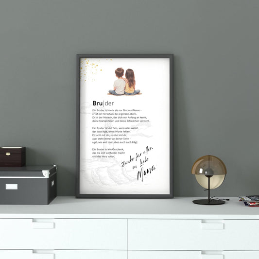Brief an Bruder | Liebevolle Botschaft, Geschwisterbrief, Geschenk für Bruder (ohne Rahmen)