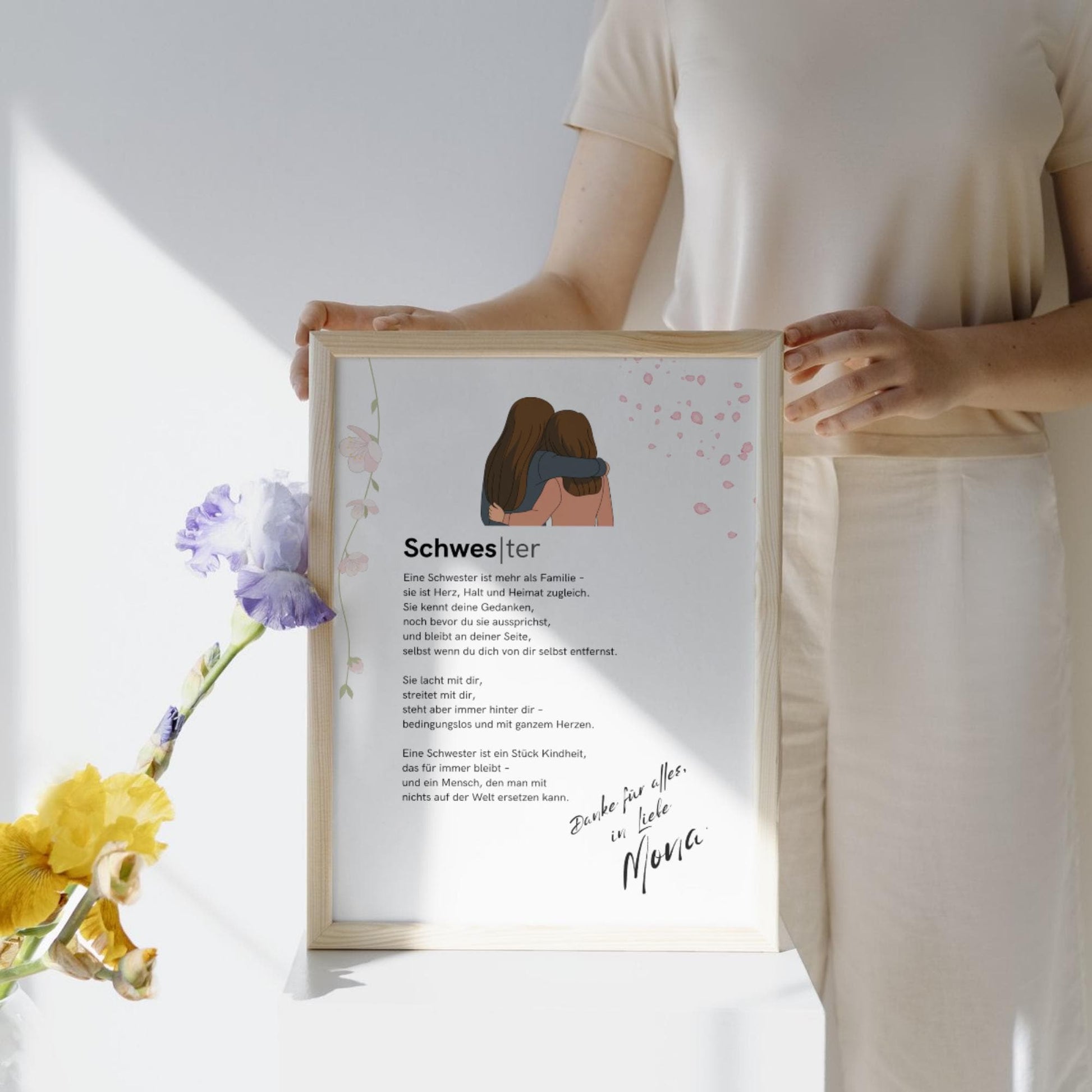 Brief an Schwester | Liebevoller Brief, Geschenk für Schwester, Dankeschön mit Herz (ohne Rahmen)