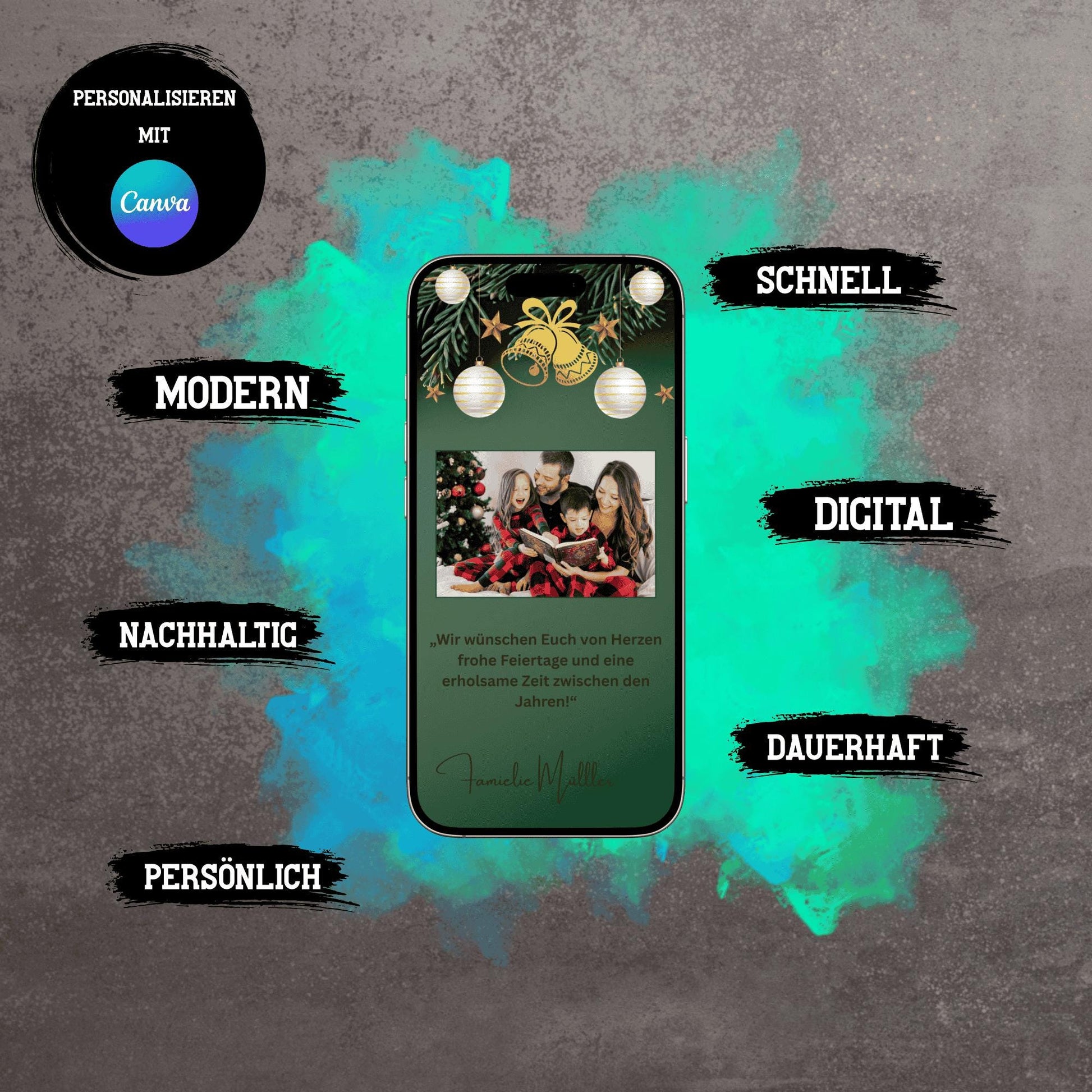 Digitale Grußkarte zu Weihnachten | Personalisierbare Grußkarte| Verschicke per E-Mail, WhatsApp, etc.