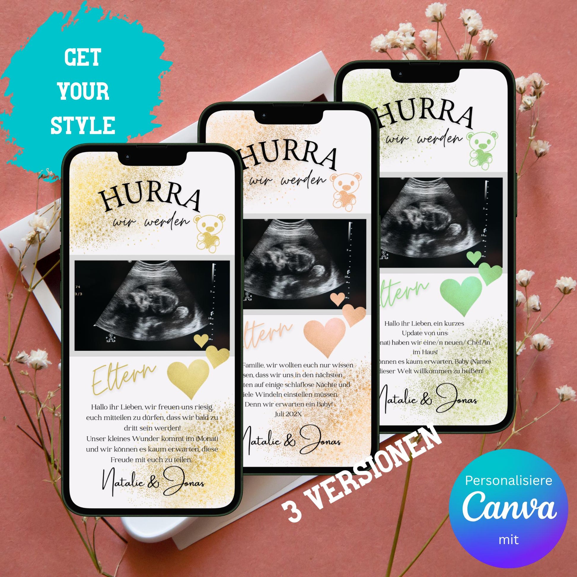 Digitale Schwangerschaftsverkündung | Baby-News Reveal | Personalisiert | Überraschung für Familie & Freunde | Sofort-Download
